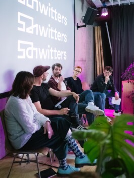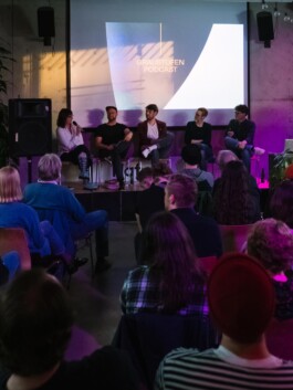 Was hat Design mit Lesen und Schreiben zu tun? Um diese und andere Fragen zu besprechen, haben wir für unsere zweite Livefolge drei Persönlichkeiten eingeladen, die alle keine SchriftstellerInnen sind aber in ihrer täglichen Arbeit oft genauso viel mit Büchern und Texten zu tun haben. Benjamin und Thimm saßen gemeinsam auf der Bühne mit der Besitzerin des Comicbuchladens COMIX Hannover Katinka Kornacker, dem Grafikdesigner und Schriftgestalter David Turner und der freischaffenden Künstlerin, ausgebildeten Buchbinderin und Vorleserin Vera Burmester. Diese Livefolge wurde am 25.5.19 im Hafven in Hannover vor Publikum aufgezeichnet.